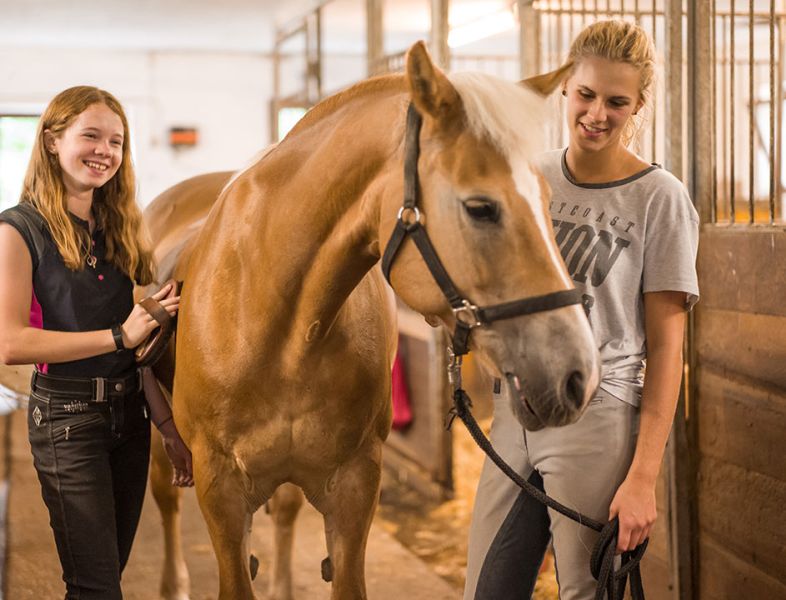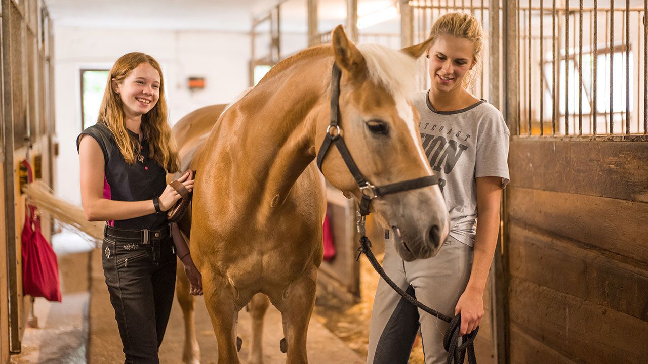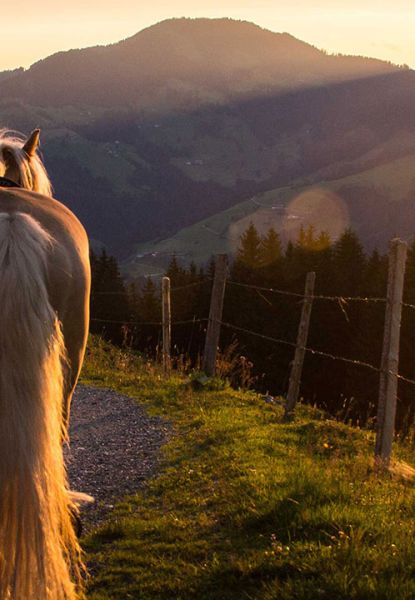 From your first lesson to riding with confidence: You’ll train with our instructors in the indoor riding arena (also available in winter upon request). We also offer daily guided trail rides away from busy roads. Enjoy special moments with a breakfast ride or a ride to the alpine pastures—and for children, pony rides and pony leading are available upon request.