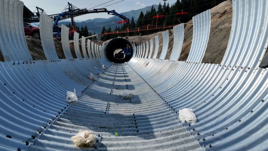 Rund um die Mittelstation der Schatzbergbahn wurde die Sommerzeit für eine komplette Neugestaltung genutzt. Herzstück des Projekts ist die Verlegung der Fahrstraße in einen unterirdischen Tunnel. Dadurch wird das Skivergnügen gleich mehrmals verbessert: