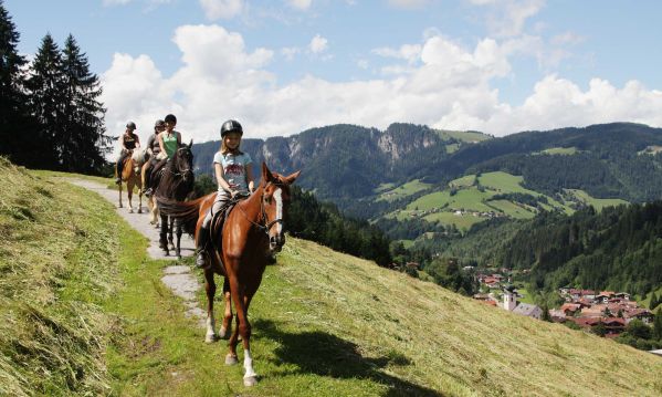 Genießen Sie die Morgensonne, während Sie entlang der Wanderwege zum Berggasthof Koglmoos oder zur Jausenstation Hörbighof reiten. Nach einem ausgiebigen Frühstück auf der Sonnenterrasse reitet man wieder zurück ins Tal.