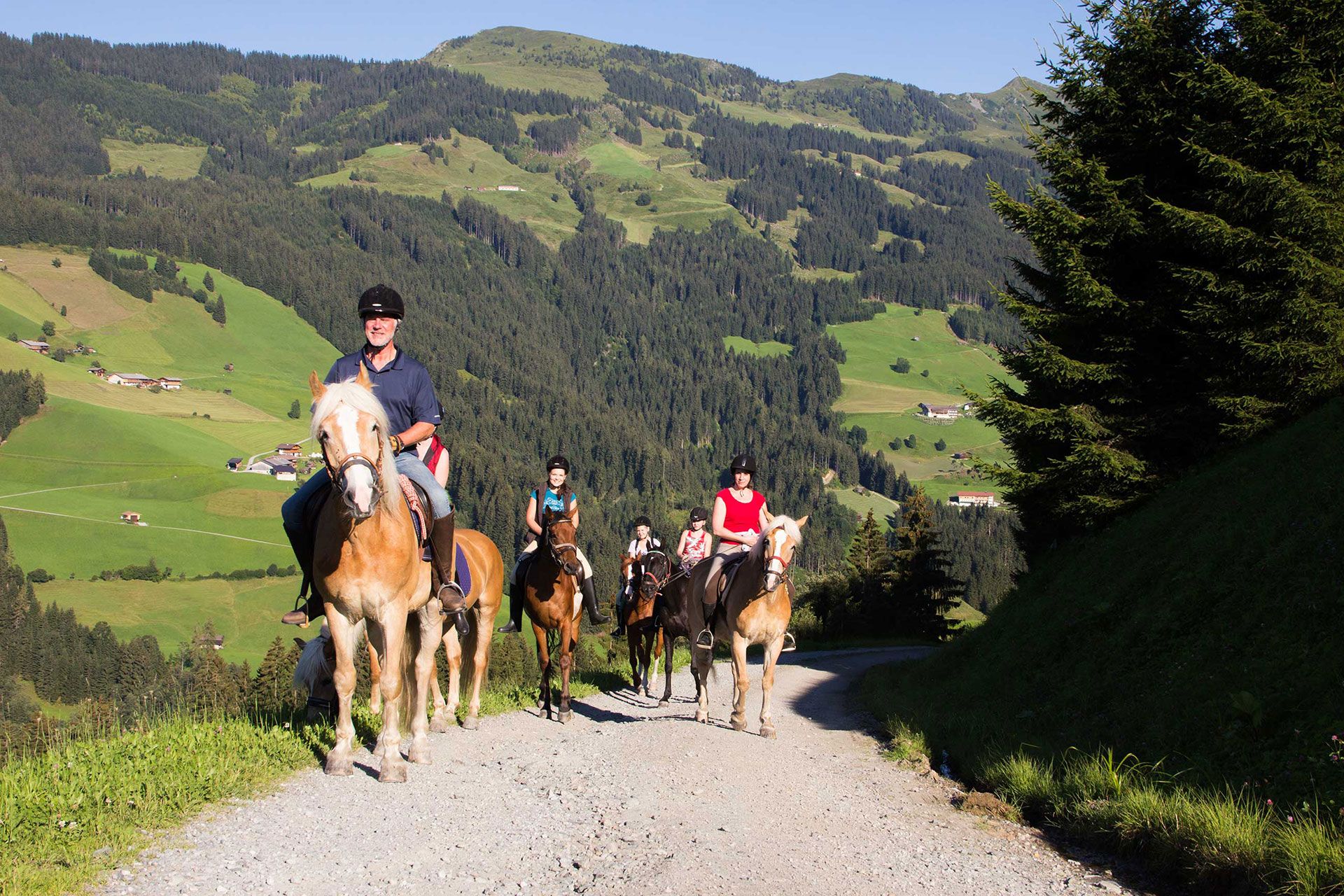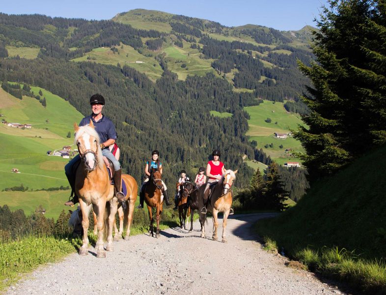 Vom ersten Kontakt bis zum sicheren Sitz: In der Reithalle trainieren Sie mit unseren Lehrern (auf Anfrage auch im Winter). Dazu kommen tägliche, geführte Ausritte abseits vielbefahrener Straßen. Für besondere Momente sorgen Frühstücksritt oder Almritt – und für Kinder Ponyreiten und -führen auf Anfrage.